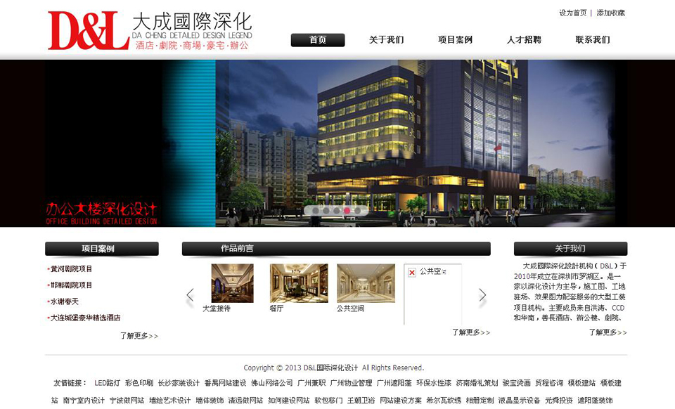 項目名稱:大成國際深化設計機構 簽定時間:2013-11-28 項目網址:http://www.lvshsj.com/ 項目簡介: 大成國際深化設計機構(D&L)于2010年成立在深圳市羅湖區。是一家以深化設計為