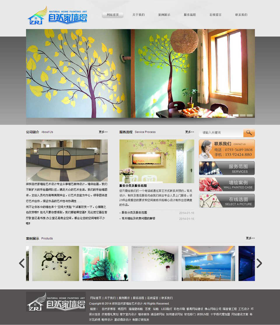 項目名稱:深圳自然家墻繪藝術設計 簽定時間:2013-11-28 項目網址:http://www.zrj88.com/ 項目簡介: 集設計、繪畫于一身的墻繪工作室 有著專業的人員: 成員均畢業于美術藝術學院 專業的設計