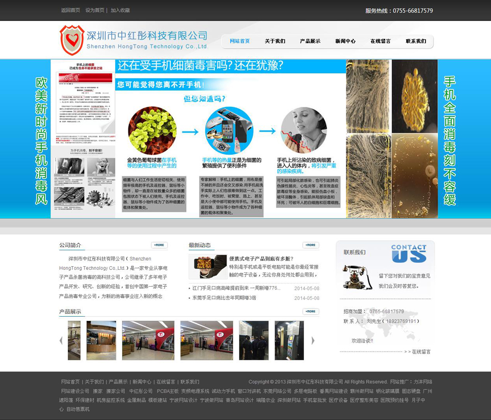 深圳市中紅彤科技有限公司(ShenzhenHongTongTechnologyCo.,Ltd.)是中國第一家專業從事便攜式電子產品殺菌消毒的高科技公司,公司繼承了多年電子產品和設備開發、研究、創新的經驗,首創中國第一家便攜式電子產品殺菌消毒專業公司,并擁有相關多項專利,為新的消毒殺菌事業注入新的概念,成為這一新興行業的領航人。