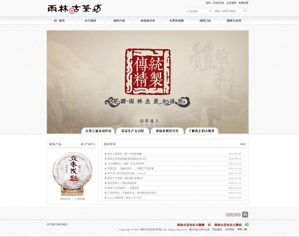 項目名稱:勐海雨林古茶坊茶葉有限責任公司 簽定時間:2014-8-29 項目網址:http://www.yulintea.com 項目簡介: 勐海雨林古茶坊茶葉有限責任公司,成立于2012年,總部設于中國云南省西雙版
