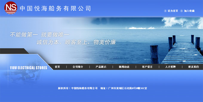 項目名稱:中國悅海船務有限公司網(wǎng)站建設簽定日期:2009年9月10日網(wǎng)站首頁效果圖: