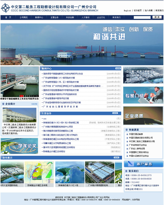 中交第二航務工程勘察設計院有限公司廣州分公司網站建設項目順利完成,完成時間: 2009年9月20日