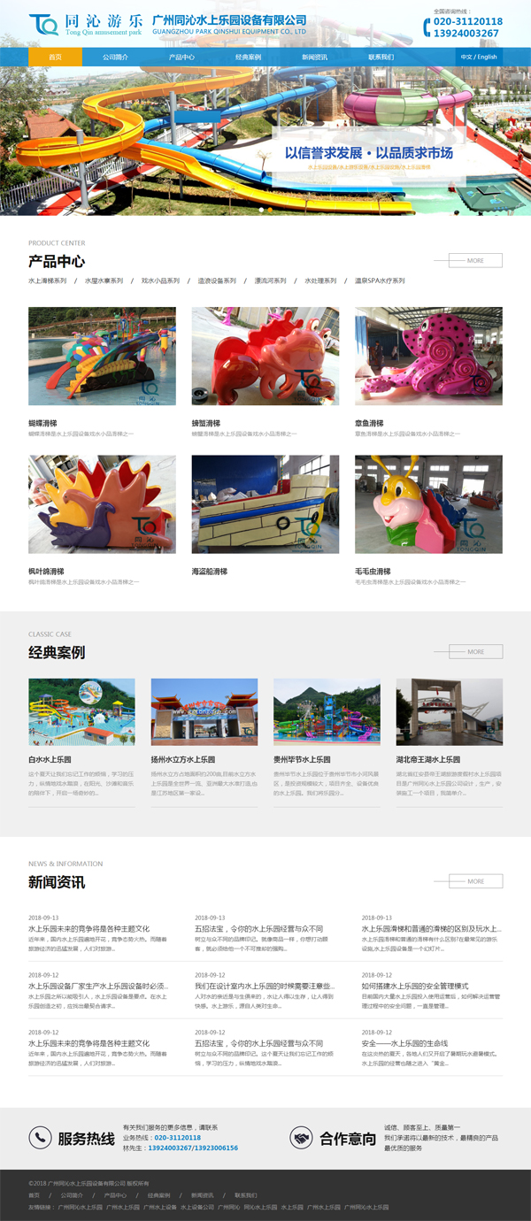 項目名稱:廣州同沁水上樂園設備有限公司建設網站 項目網址:www.gztongqin.com 設計稿: 廣州同沁水上樂園設備有限公司是一家專業從事水上樂園、水上游樂園、游泳場館、溫泉度假村、水療SPA會館、等游樂設施成套設備的生產供應