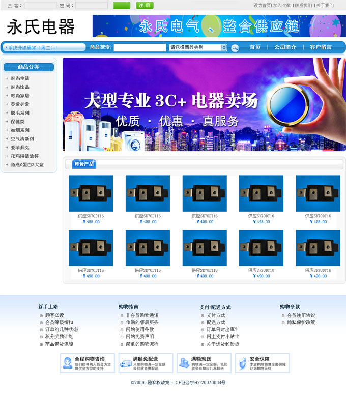 項目名稱:廣州永氏電氣公司網站建設簽定日期:2009年12月16日公司簡介:廣州永氏電氣公司經營:電工室內材料,排水管、給水管、通風設備等等。經營批發多年,經營范圍,遍布珠三角,在行業中基本熟識本公司。本公司一貫以來,以誠信取信于朋友,取信