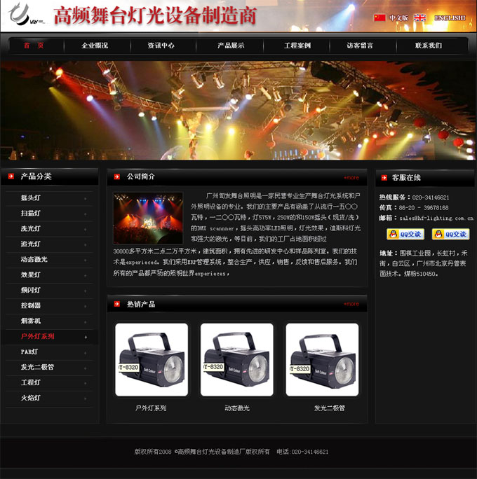 項目名稱:HFLighting網站建設簽定日期:2010年1月5日網站域名:www.hf-lighting.com.cn網站首頁效果: