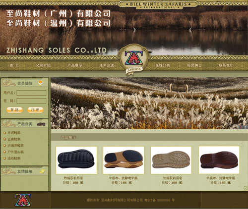 項目名稱:致尚鞋材網網站建設簽定日期:2010年2月1日網站首頁效果: