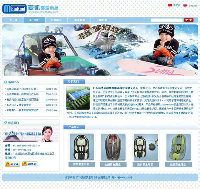 項目名稱:麥凱嬰童用品科技有限公司網(wǎng)站建設(shè)簽定日期:2010年3月22日公司簡介:廣東汕頭麥凱嬰童用品科技有限公司是一家集設(shè)計、生產(chǎn)和銷售汽車兒童安全座椅為一體的大型企業(yè)。公司成立于2006年,秉承“為全世界兒童提供最安全、舒適、美觀和實用