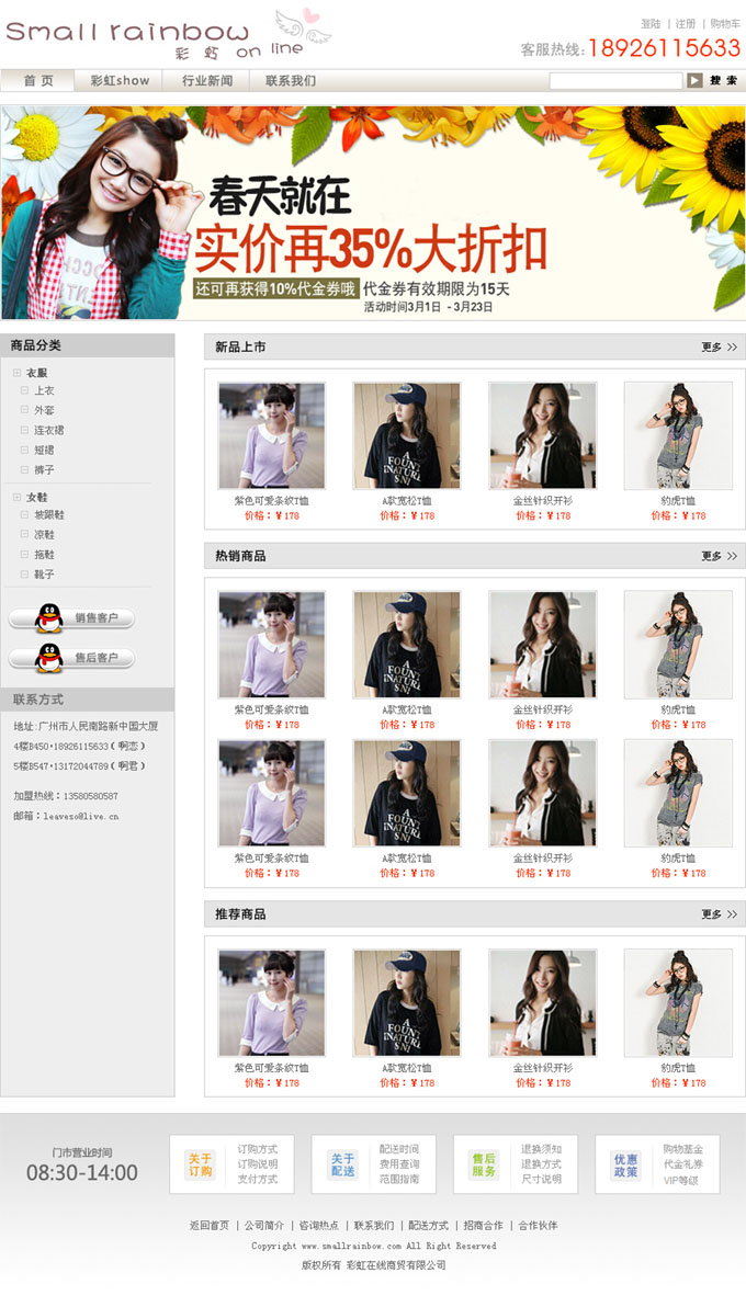 項目名稱:彩虹在線商貿有限公司網站建設簽定日期:2010年3月25日網站首頁設計稿: