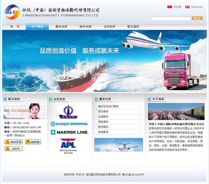 項(xiàng)目名稱:環(huán)迅(中國(guó))國(guó)際貨物運(yùn)輸代理有限公司簽定日期:2010年4月1日公司介紹:環(huán)迅(中國(guó))國(guó)際貨物運(yùn)輸代理有限公司是國(guó)家商務(wù)部正式批準(zhǔn)的一級(jí)貨運(yùn)代理企業(yè),并經(jīng)中華人民共和國(guó)交通部批準(zhǔn)經(jīng)營(yíng)無船承運(yùn)業(yè)務(wù)。根據(jù)現(xiàn)今不同客戶的不同需求,該公司