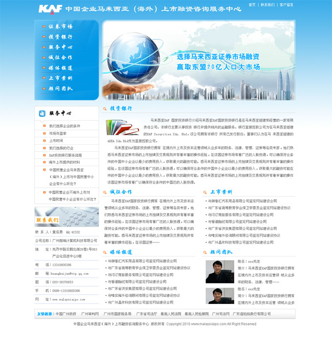 項目名稱:中國企業馬來西亞(海外)上市融資咨詢服務中心網站建設