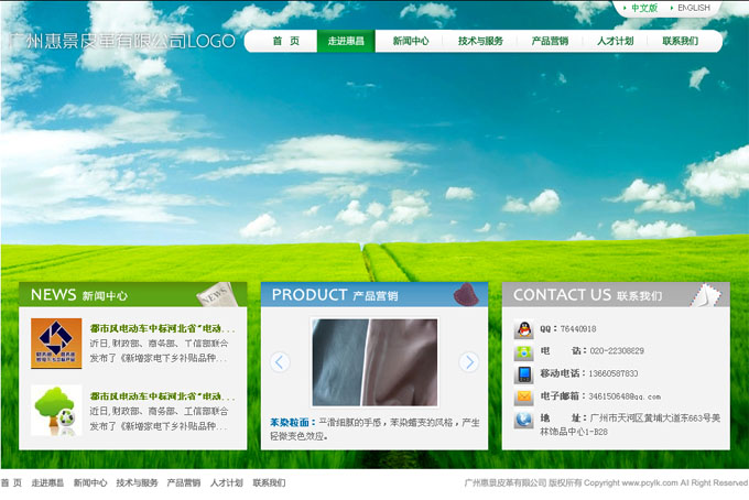 項目名稱:廣州惠景皮革有限公司網(wǎng)站建設(shè)簽定日期:2010年8月24日廣州惠景皮革有限公司于1999年在廣州成立,主要從事皮革化工國際貿(mào)易。目前代理有來自意大利VECO公司、意大利NCF公司、印度HARYANA公司、印度VISWAAT公司、韓