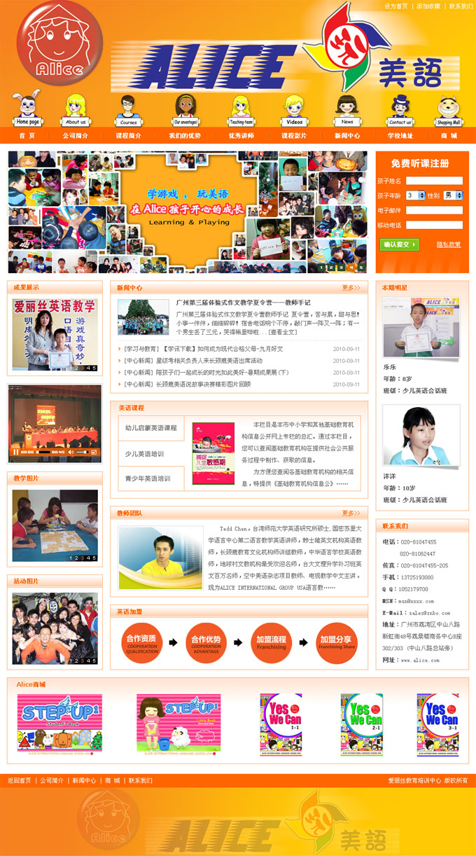 項目名稱:愛麗絲教育培訓中心網站建設簽定日期:2010年9月8日網站首頁設計稿: