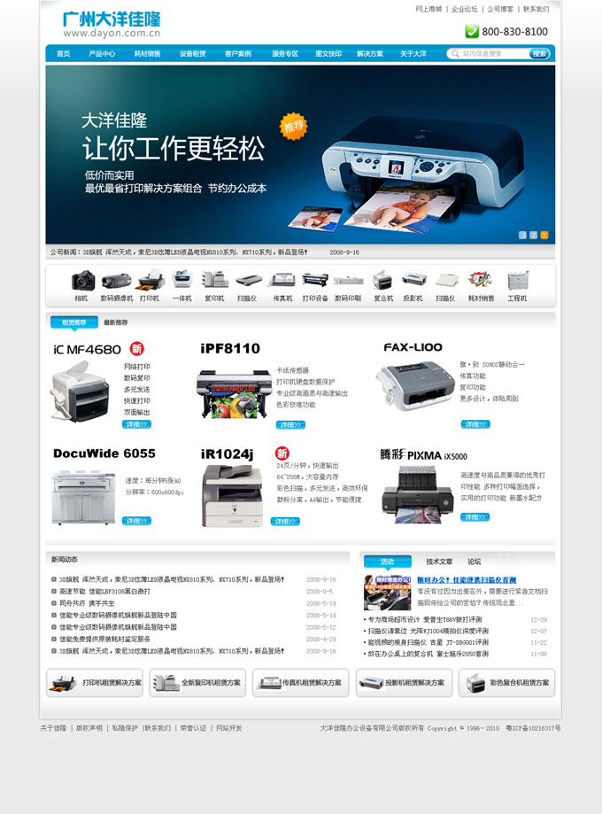 項目名稱:廣州大洋佳隆有限公司網站改版簽定日期:2010-12-18廣州大洋佳隆辦公設備有限公司是一家辦公設備銷售、維修、租賃的專業機構,是日本佳能公司在華南地區最大的綜合型佳能經銷商,是佳能公司認定的佳能廣州地區分銷商、佳能五星級維修站、
