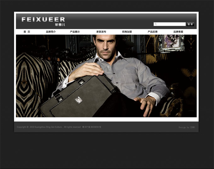 項目名稱:菲雪兒箱包有限公司網站建設簽定日期:2010年12月25日網站首頁設計稿: