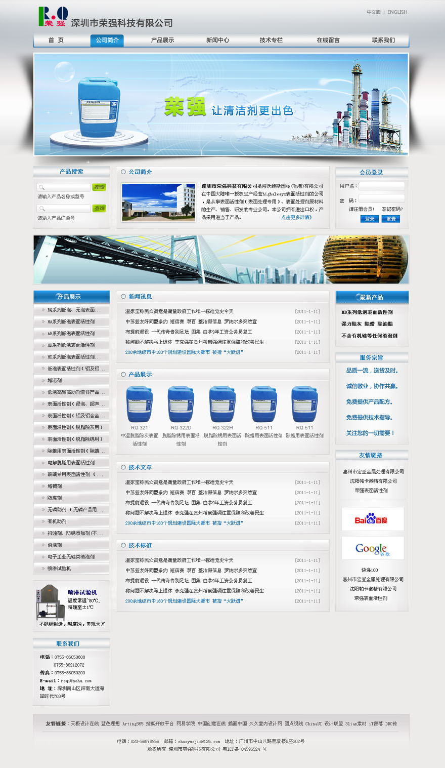 項目名稱:深圳榮強科技有限公司網站建設簽定日期:2011年1月28日公司簡介:榮強,由一群立志于科技夢想、關愛地球,愛護自然、追求高尚生活元素的國際化工精英團隊創立的高科技品牌。深圳市榮強科技有限公司于2005年創立,多年一直專注于研發、生