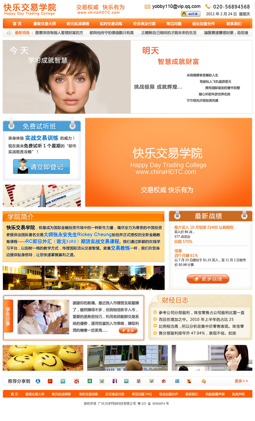 項目名稱:快樂交易學院網站建設簽定日期:2011年2月10日網站首頁設計稿:(縮略圖)