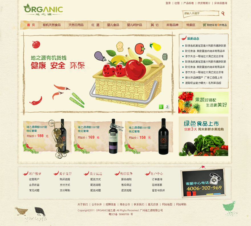 項目名稱:地之源有機食品有限公司網站建設簽定日期:2011年7月5日網站首頁設計稿:(縮略圖)