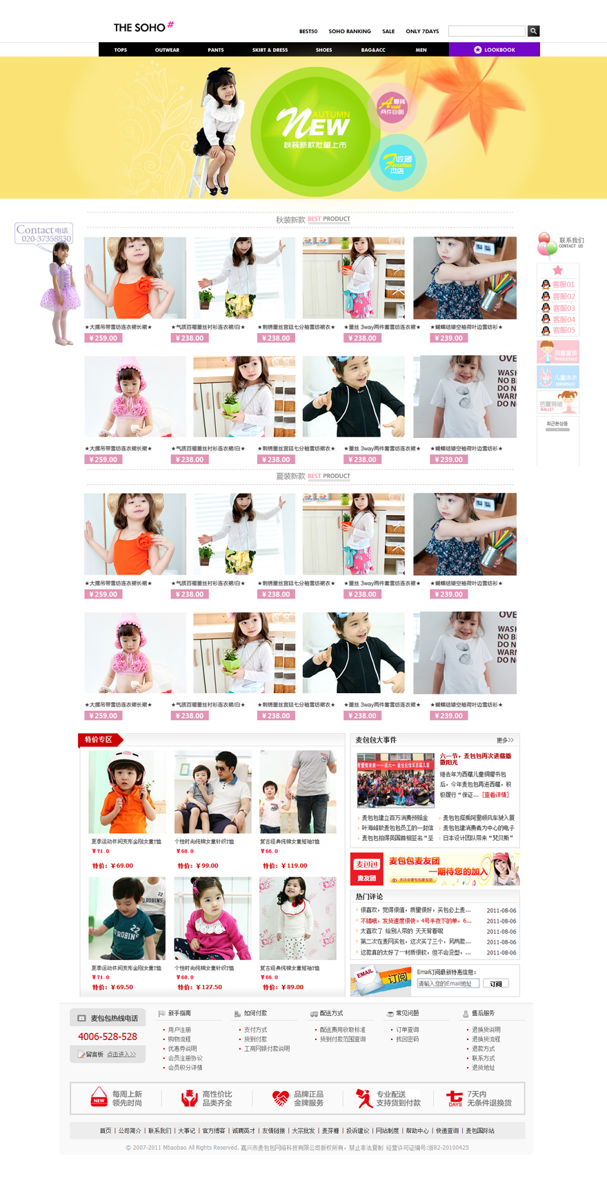 項(xiàng)目名稱:童裝批發(fā)網(wǎng)網(wǎng)站建設(shè)簽定日期:2011年7月10日網(wǎng)站首頁(yè)設(shè)計(jì)稿:(縮略圖)