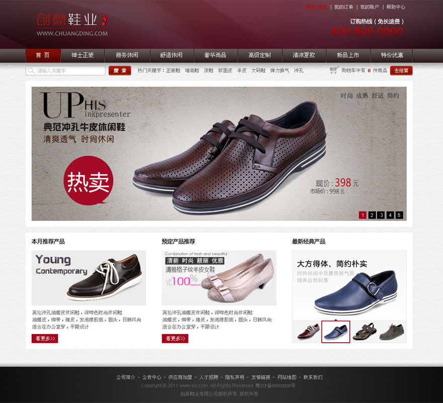 項目名稱:創鼎鞋業有限公司網站建設簽定日期:2011年7月19日網站首頁設計稿:(縮略圖)