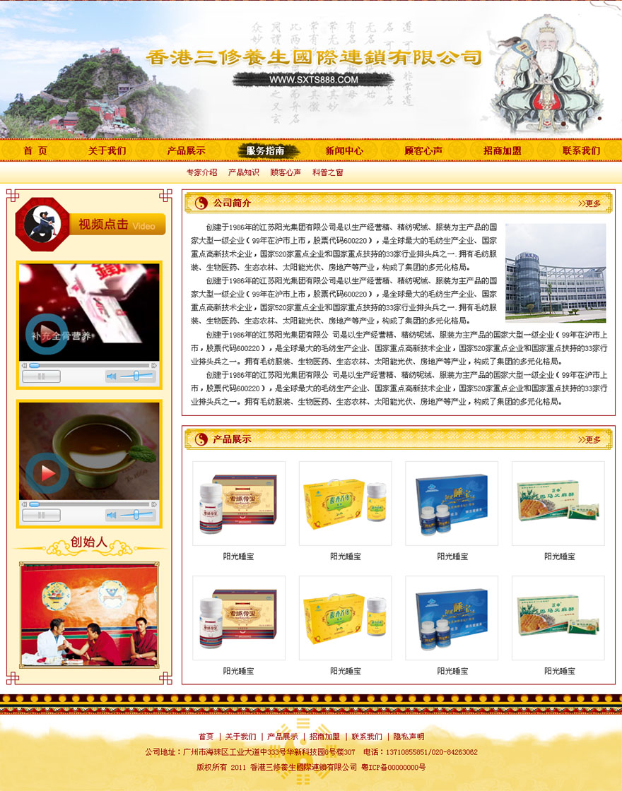 項目名稱:香港三修養(yǎng)生國際連鎖有限公司網(wǎng)站建設(shè)簽定日期:2011年9月27日網(wǎng)站首頁效果圖: