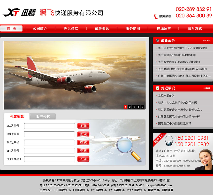 項目名稱:廣州迅騰國際貨運代理網站建設簽定日期:2011年10月7日公司網址:http://www.gs-oa.com公司簡介:迅騰國際貨運代理是平信貨運代理有限公司旗下一級代理,獲得中國政府批準的合法經營國際快遞、國際空運業務的專業化國際
