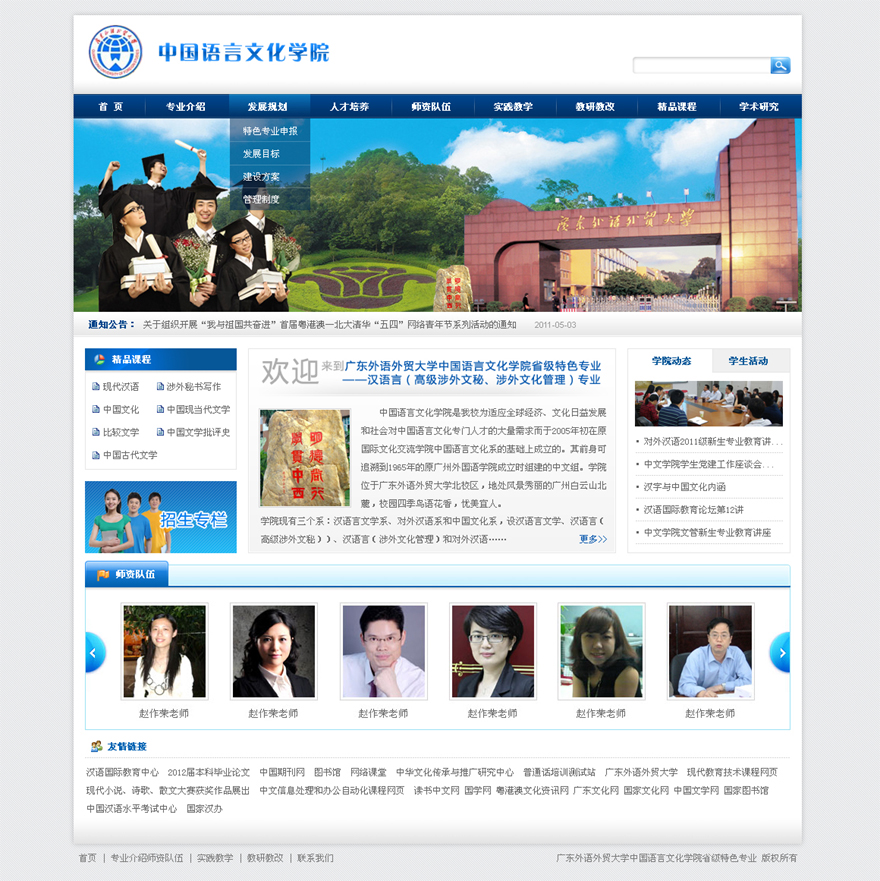 項目名稱:廣東外語外貿大學中文學院漢語言專業網站建設簽定日期:2011年10月8日網站網址:http://www.gwzwhyy.com/廣東外語外貿大學中文學院漢語言本科專業的前身是1986年開設的中英文秘書專業,1989年升本,1999