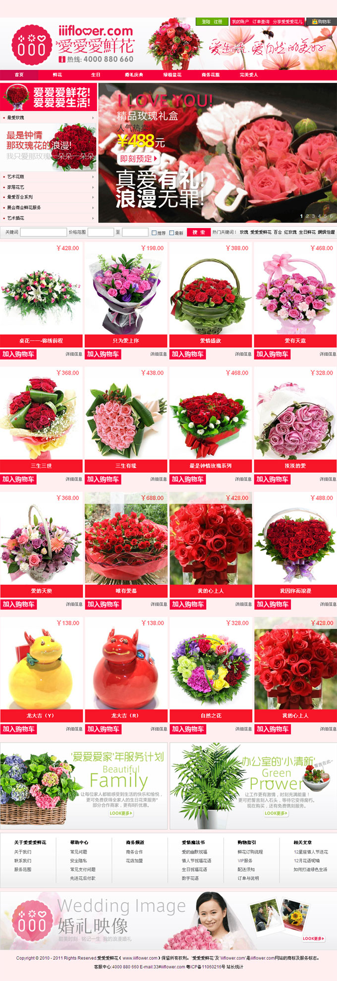 項目名稱:愛愛愛鮮花網網站建設簽定日期:2012年3月9日網址:http://www.iiiflower.com “愛愛愛鮮花網”精心準備的花卉作品,可以在您愛情表白、婚禮、結婚周年、賀喜、祝壽、慶典、感謝、生日、