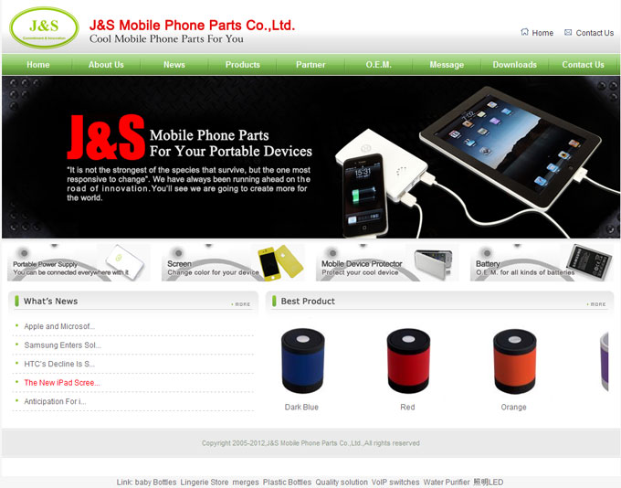 項目名稱:北京美萊美科技有限公司網(wǎng)站建設簽定日期:2012年4月13日網(wǎng)址:http://www.coolmobilephoneparts.comJ&SMobilePhonePartsCo.,Ltd.isoneoftheleadin