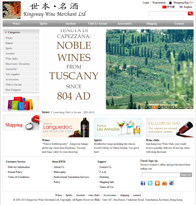 項目名稱:世本名酒有限公司網(wǎng)站建設(shè)簽定日期:2012年4月26日網(wǎng)址:http://www.kingswaywines.comWorldthiswine,"TheWorld"wordfromtheQinDynastyhi