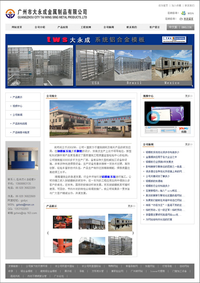 項目名稱:大永成金屬制品有限公司網(wǎng)站建設(shè)簽定日期:2012年4月28日網(wǎng)址:http://www.gztws.com大永成金屬制品有限公司成立于2002年,公司一直致力于建筑鋼構(gòu)及相關(guān)產(chǎn)品的研發(fā)應(yīng)用,在鋼模板系統(tǒng)及手腳架的設(shè)計、安裝及生產(chǎn)上