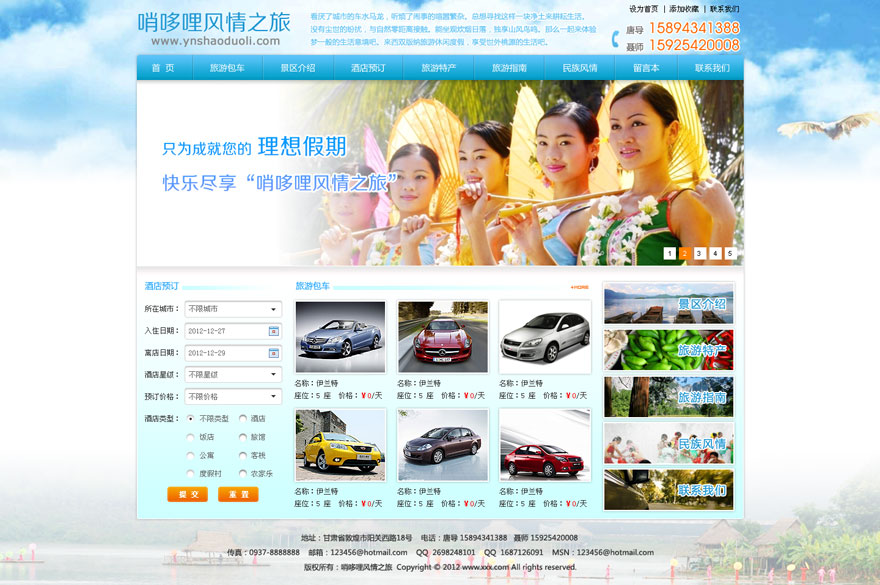 項目名稱:唐麗旅游網(wǎng)簽定日期:2012年12月20日網(wǎng)址:http://ynshaoduoli.com/在這里用最真誠的心,為您帶來如家般的溫暖。一份朋友間的真誠期待您的到來。