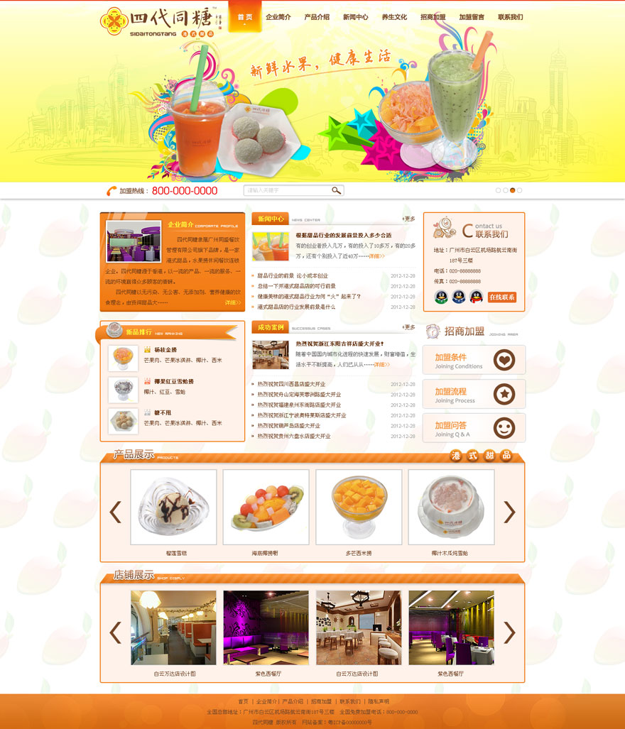 項(xiàng)目名稱(chēng):盛開(kāi)網(wǎng)站建設(shè)簽定日期:2012年12月26日網(wǎng)址:http://www.sdtttp.com/四代同糖隸屬?gòu)V州同盛餐飲管理有限公司旗下品牌,是一家港式甜品,水果撈休閑餐飲連鎖企業(yè)。四代同糖源于香港,以一流的產(chǎn)品、一流的服務(wù)、一流的