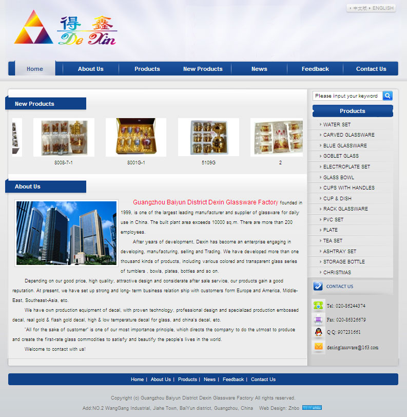 項目名稱:德鑫網站建設簽定日期:2013年1月10日網址:http://www.dexinglass.com/GuangzhouBaiyunDistrictDexinGlasswareFactoryfoundedin1999,isoneof