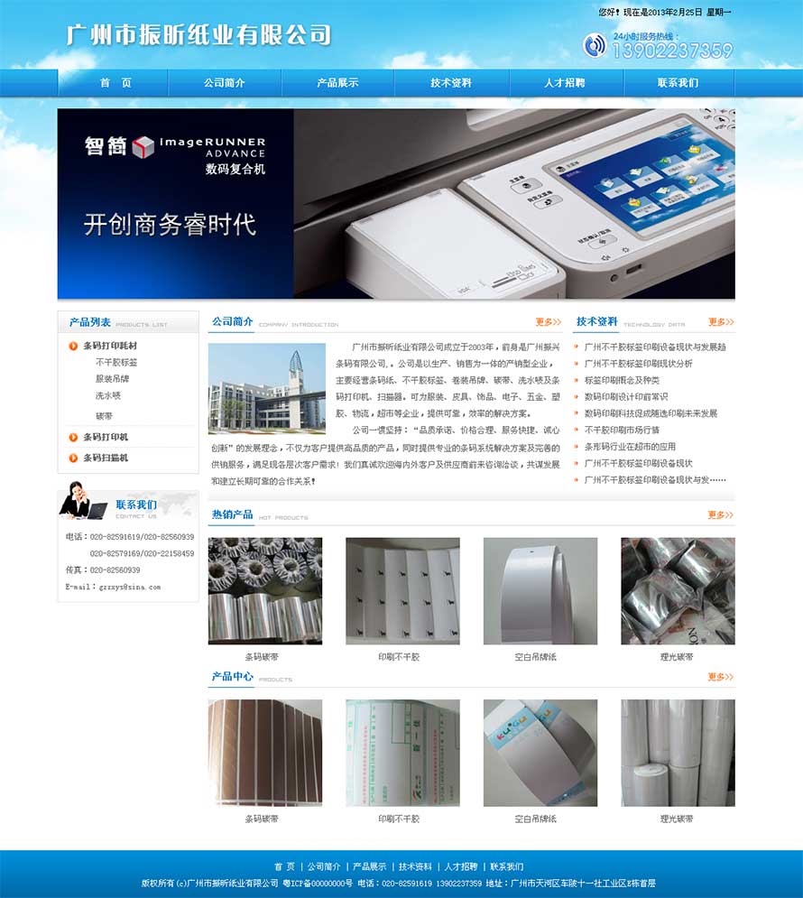 項目名稱:廣州振興條碼網站建設簽定日期:2013年2月22日網址:http://www.gzzxys.com/廣州市振昕紙業有限公司成立于2003年,前身為廣州市振興條碼科技有限公司。公司專營條碼打印機、條碼標簽紙、碳帶、卷裝吊牌等條碼機相