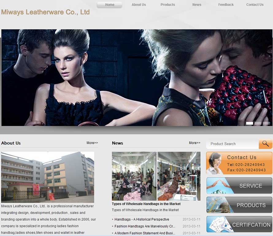 Miways Leatherware Co., Ltd.. is a professional manufacturer integrating design, development, production , sales and branding operation into a whole body. Established in 2006, our company is specialized in producing ladies fashion handbag,ladies shoes,Men shoes and wallet in leather ,PU,PVC,nylon, canvas and various type of fabric. we are committed to designing fresh products every season with the fashion materials and high quality at an affordable cost for worldwide customers.