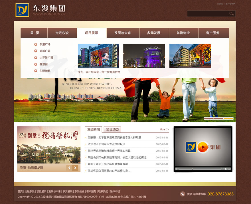項目名稱:東浚集團網站建設簽定日期:2013年3月10日網址:http://www.dongjun.cn東峻集團成立十余年以來,堅持秉承開拓進取、以人為本、服務大眾的精神,根植廣州,面向全國。公司目前累計投資中國內地市場近百億元人民幣。已經