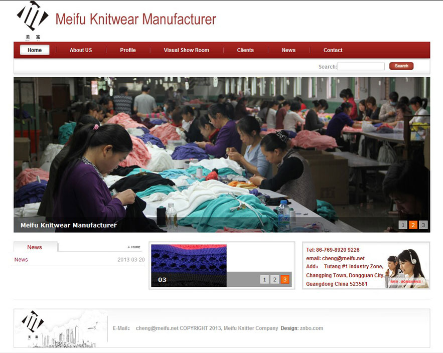 項目名稱:銘悅服飾網站建設簽定日期:2013年3月15日網址:http://www.meifuknitwear.comFoundedin1985,MeifuKnitwearManufacturerlocatesinthecenterofCh