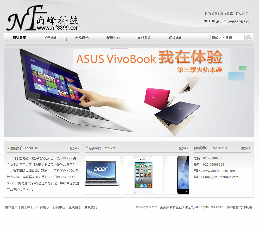 項目名稱:南峰科技網站建設 簽定日期:2013年3月25日 網址:http://www.nf8899.com
