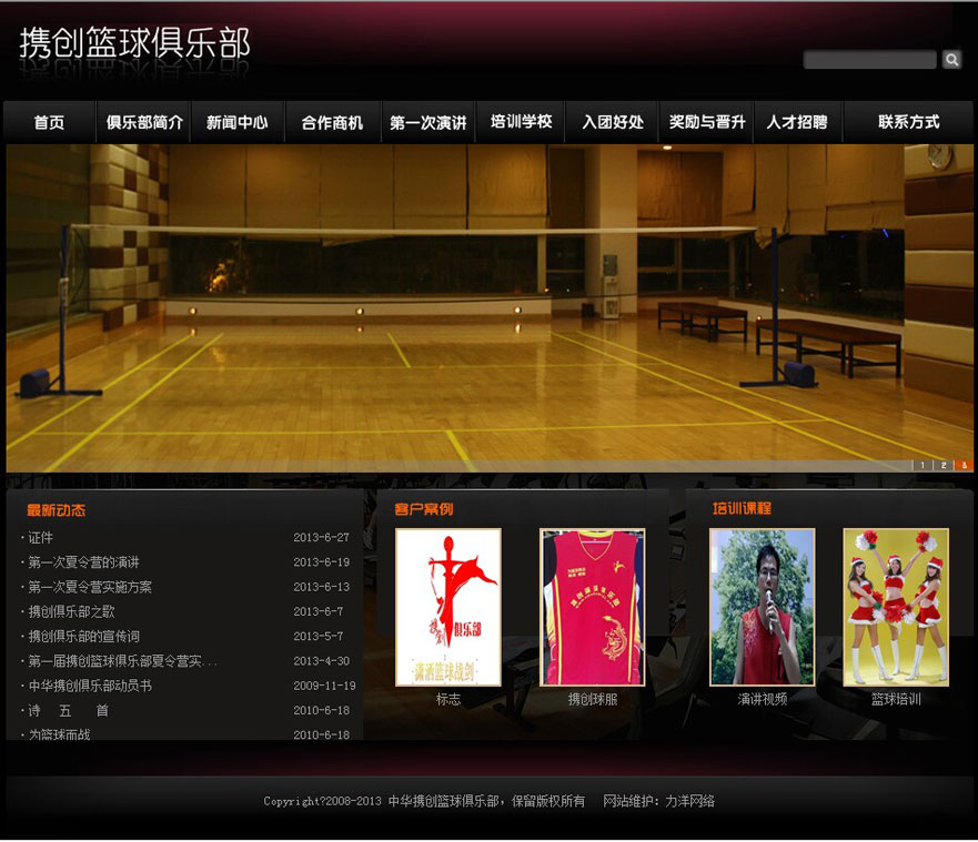 項目名稱:攜創籃球俱樂部網站建設簽定日期:2013年4月25日網址:http://www.xiechuang1.com攜創俱樂部是專門從事與籃球相關專業性的社會組織,是籃球娛樂與休閑的單位。攜創俱樂部招收籃球愛好者后,愛好者對組織有相應的貢