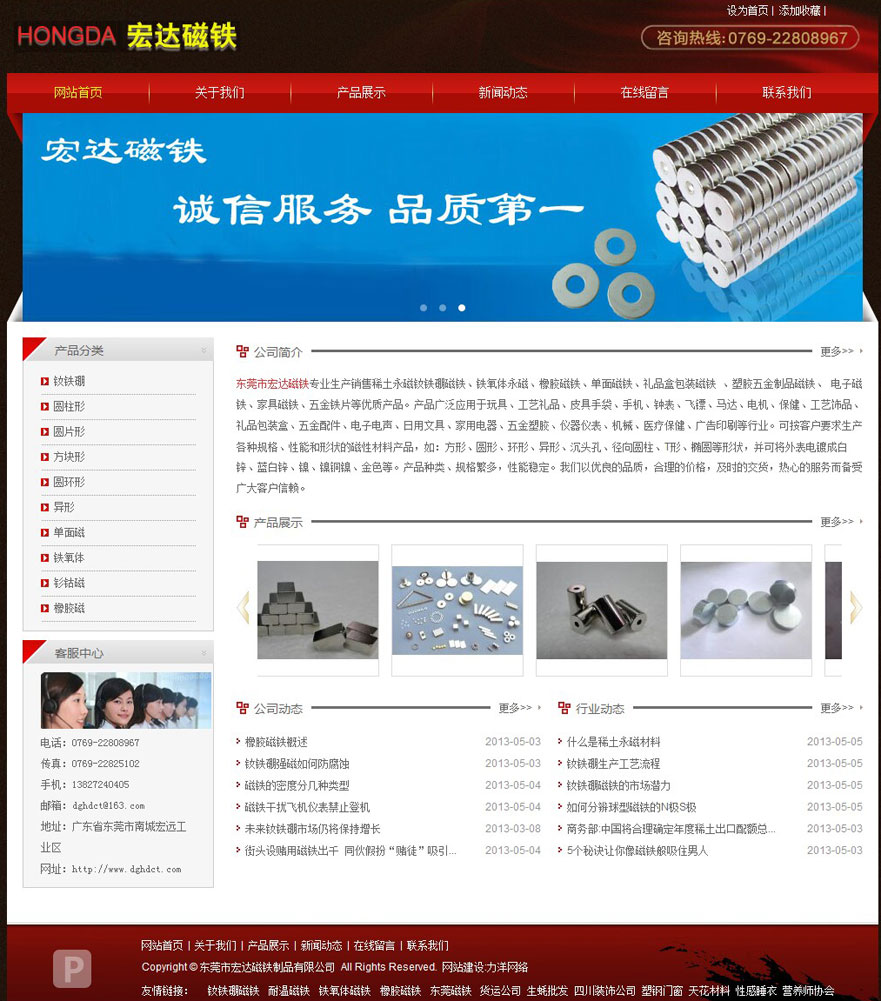 項目名稱:東莞市宏達磁鐵網站建設簽定日期:2013年5月2日網址:http://www.dghdct.com東莞市宏達磁鐵專業生產銷售稀土永磁釹鐵硼磁鐵、鐵氧體永磁、橡膠磁鐵、單面磁鐵、禮品盒包裝磁鐵、塑膠五金制品磁鐵、電子磁鐵、家具磁鐵、