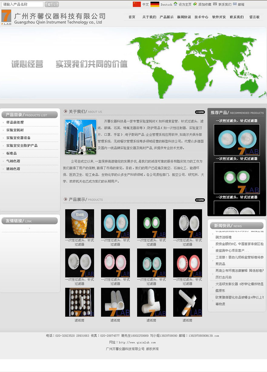 項目名稱:齊馨儀器科技網站建設簽定日期:2013年5月10日網址:http://www.qixinlab.com齊馨儀器科技是一家專營實驗室耗材(如纖維素套管、針式過濾頭、濾紙、玻璃、石英、特氟龍器皿等);防護用品(如一次性注射器、實驗室刀