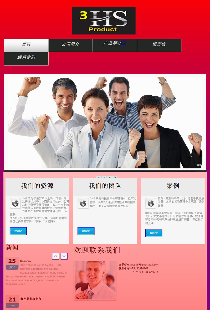 項目名稱:3hs科技有限公司網站建設簽定日期:2013年5月16日網址:http://www.tecmost.com3hs科技有限公司是一家由俄羅斯當地留學生博士團隊組建的科技型企業。全俄華人華僑科技領導企業。3HSTECH是一家極富創新性