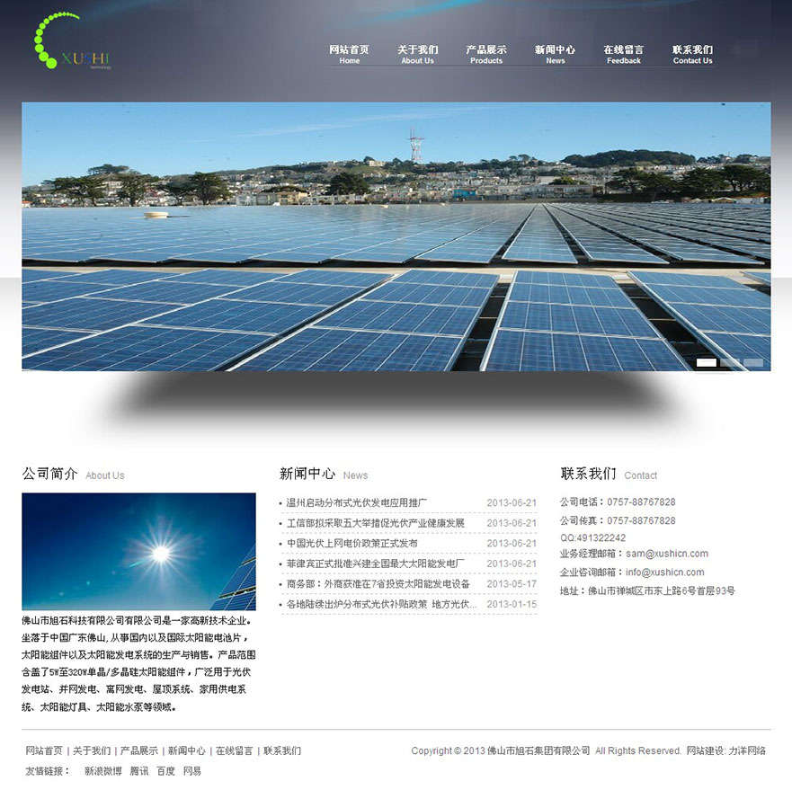 項目名稱:佛山市旭石科技有限公司網站建設簽定日期:2013年5月29日網址:http://www.xushicn.com佛山市旭石科技有限公司是一家高新技術企業。坐落于中國廣東佛山,從事國內以及國際太陽能電池片,太陽能組件以及太陽能發電系統