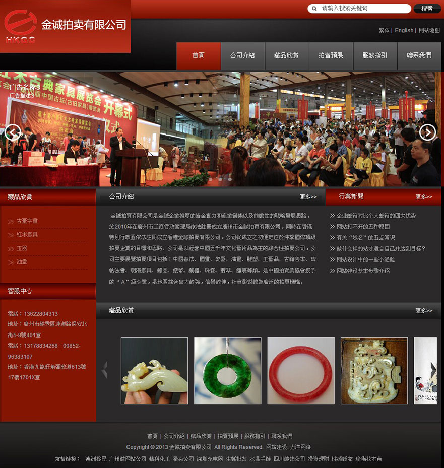 項目名稱:金誠拍賣有限公司網站建設簽定日期:2013年6月3日網址:http://www.hkgc88.com金誠拍賣有限公司是金誠企業雄厚的資金實力和產業鏈條以及前瞻性的戰略發展思路,於2010年在廣州市工商行政管理局依法註冊成立廣州市金