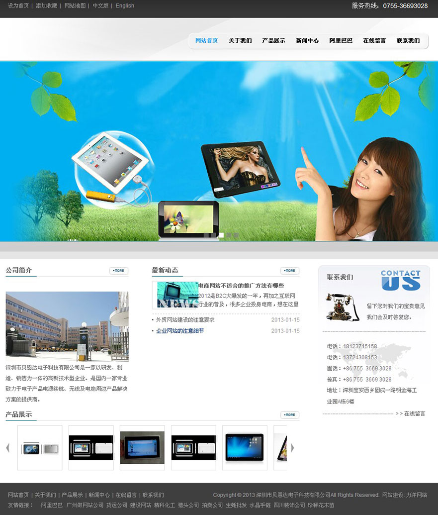 項目名稱:深圳市貝恩達電子科技有限公司網站建設簽定日期:2013年6月3日網址:http://www.beienda.com深圳市貝恩達電子科技有限公司是平板電腦,移動電源.數碼攝像機,網絡高清播放器。等產品專業生產加工的公司,擁有完整、科