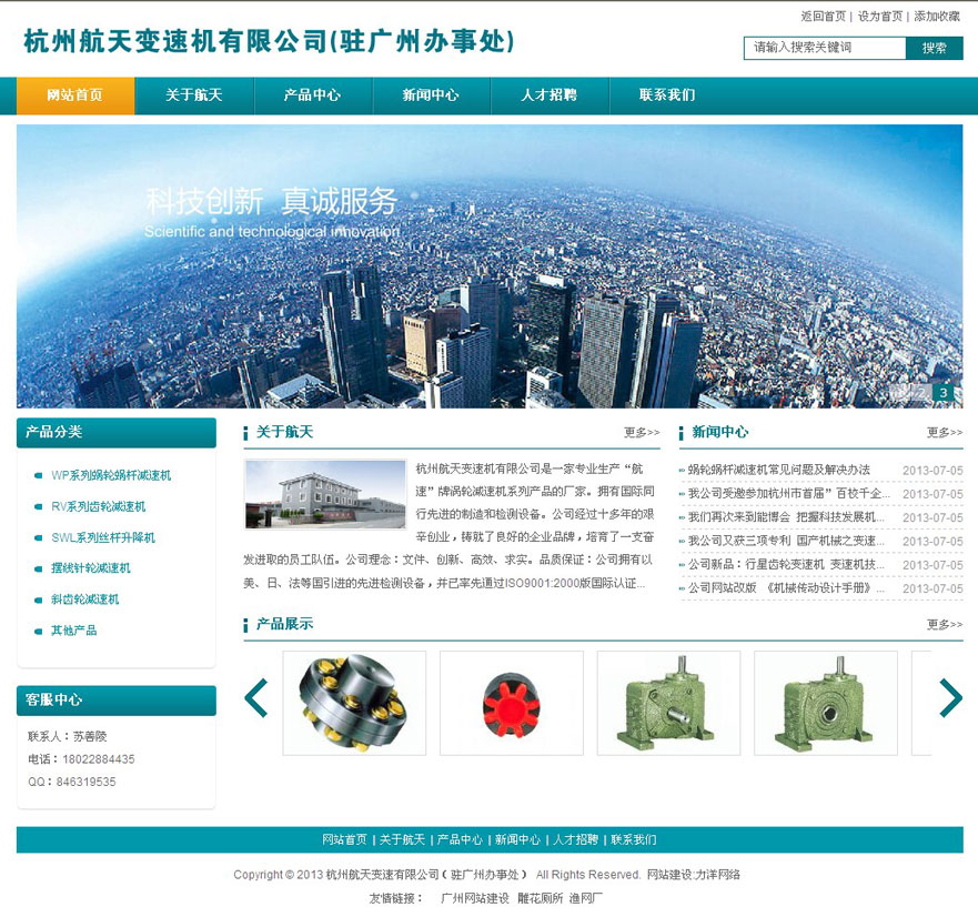 項目名稱:杭州航天變速機有限公司網站建設簽定日期:2013年7月2日網址:http://www.gz-speed.com杭州航天變速機有限公司是一家專業生產“航速”牌渦輪減速機系列產品的廠家。擁有國際同行先進的制造和