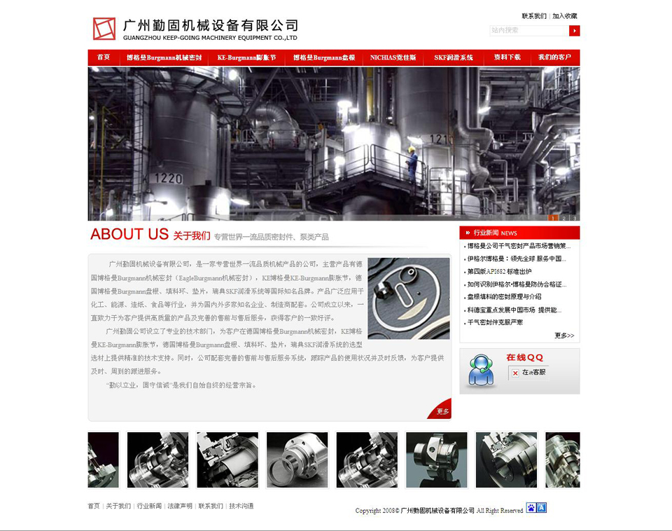 項目名稱:廣州勤固機械設備有限公司簽定時間:2013-09-16項目網址:http://www.gz-keepgoing.com/項目簡介:廣州勤固機械設備有限公司,是一家專營世界一流品質機械產品的公司,主營產品有德國博格曼Burgmann