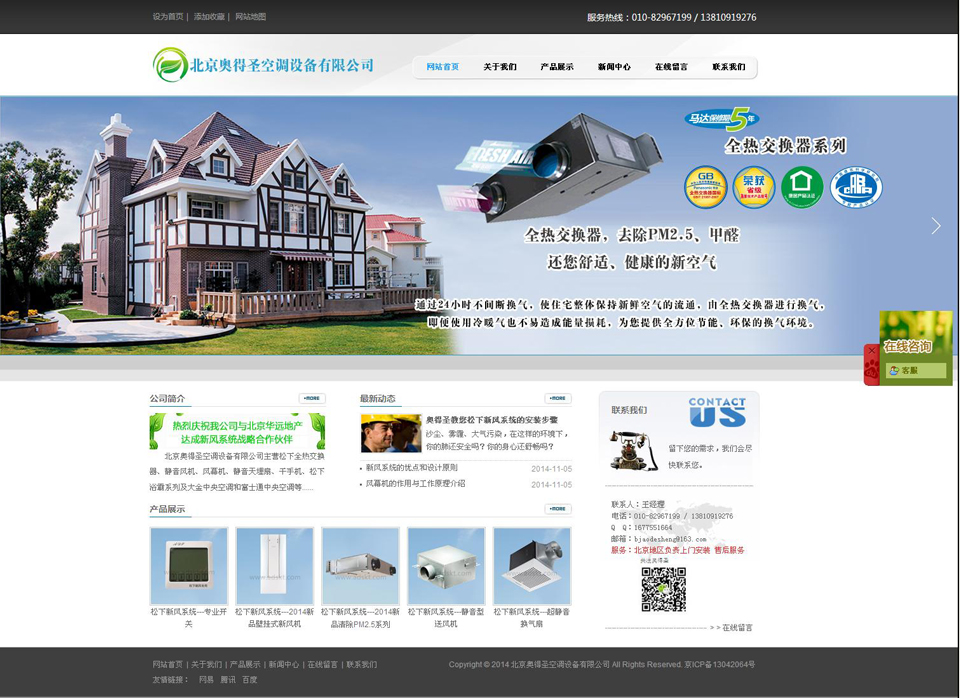 項目名稱:北京奧得圣空調設備有限公司 簽定時間:2013-10-10 項目網址:http://www.adskt.com/ 項目簡介: 北京奧得圣空調設備有限公司致力于提供高效節能、舒適環保新風系統系列產品及中央空調系統系列
