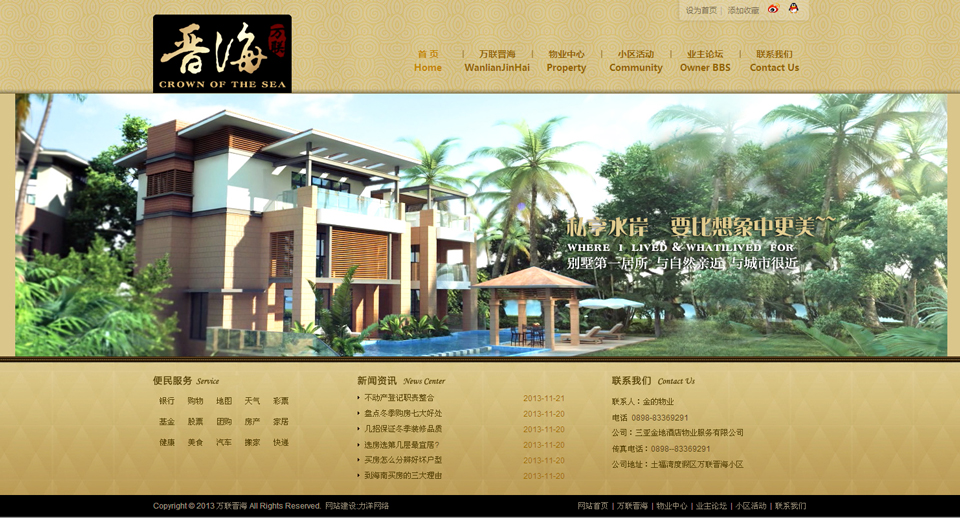 項目名稱:三亞金地酒店物業服務有限公司 簽定時間:2013-11-4 項目網址:http://www.0898wljh.com/ 項目簡介: 聯系人:金的物業 電話0898-83369291 公司:三亞金地酒店物業服務有限公